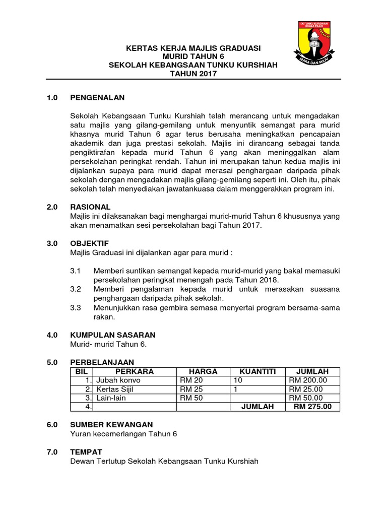 Contoh Kertas Kerja Majlis Graduasi Tahun 6